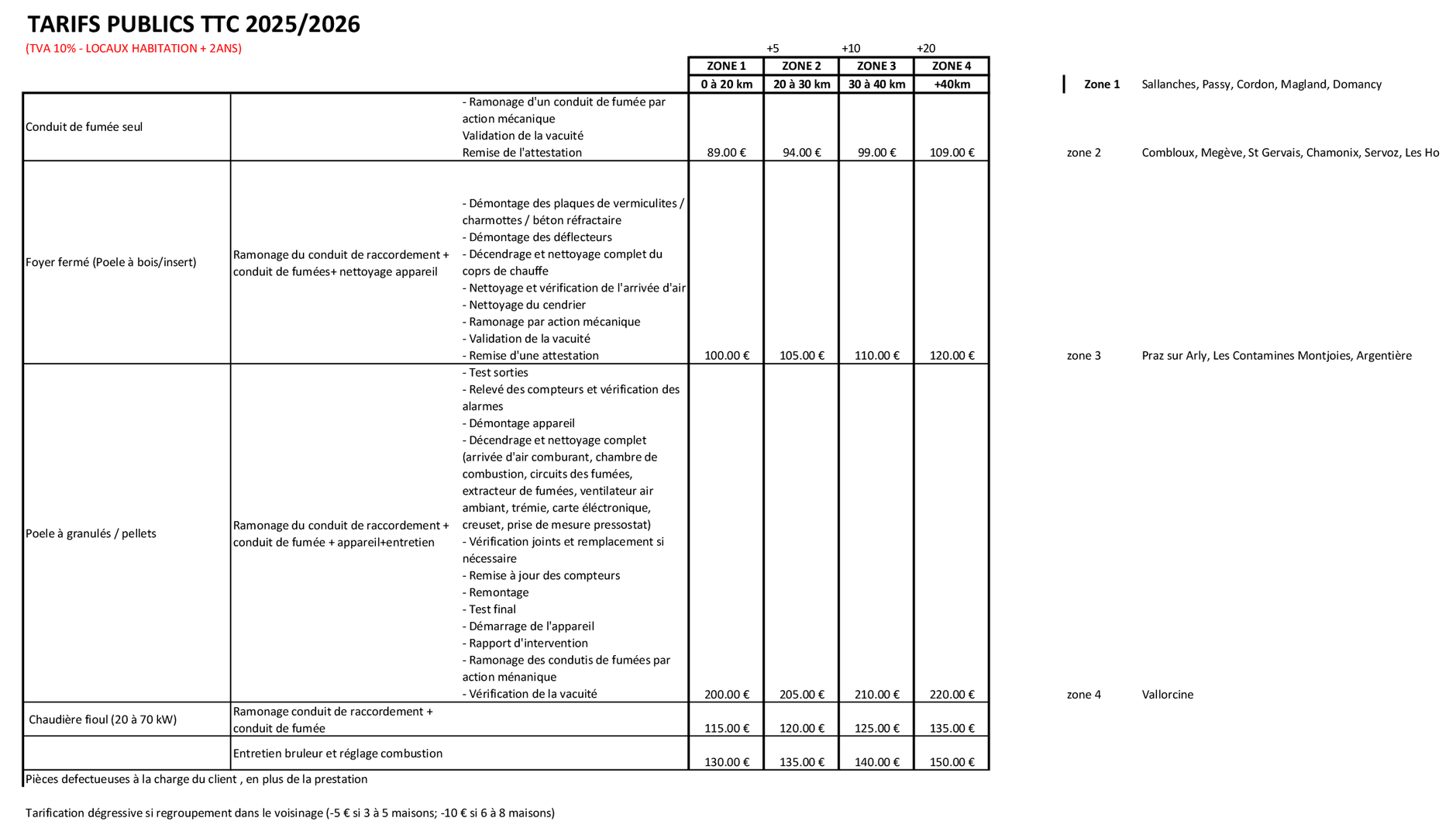 Nos tarifs de ramonage transparents pour un chauffage propre et sécurisé